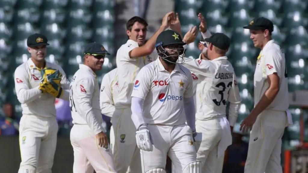 এর আগে, তৃতীয় দিন শুরু করেন আগের দিনে অপরাজিত থাকা দুই ব্যাটার আব্দুল্লাহ শফিক ও আজহার আলী। দলীয় ১৭০ রানে ভাঙে সেই জুটি, ৮১ রান করে শফিক বিদায় নিলে। আর ৭৮ রান করে কামিন্সের শিকারে পরিণত হন আজহার। এরপর নিয়মিত বিরতিতে উইকেট হারিয়ে ২৬৮ রানে থামে পাকিস্তানের প্রথম ইনিংস। বাবর আজমের ব্যাট থেকে আসে ৬৭ রান। প্যাট কামিন্স নেন ৬ উইকেট। আর ৪ উইকেট শিকার করেন আরেক পেসার মিচেল স্টার্ক।