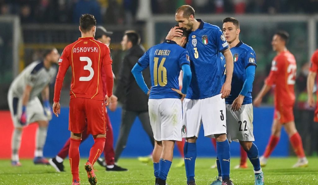টানা ২য় বারের মত বিশ্বকাপের মূল পর্বে উঠতে পারলো না চারবারের বিশ্ব চ্যাম্পিয়ন ইতালি। ইউরোপ অঞ্চলের বাছাই পর্বের প্রি প্লে অফে নর্থ মেসিডোনিয়ার কাছে শেষ মুহূর্তের গোলে হেরেছে ইতালি। তবে প্লে অফের ম্যাচে জায়গা করে নিয়েছে পর্তুগাল, সুইডেন ও ওয়েলস।