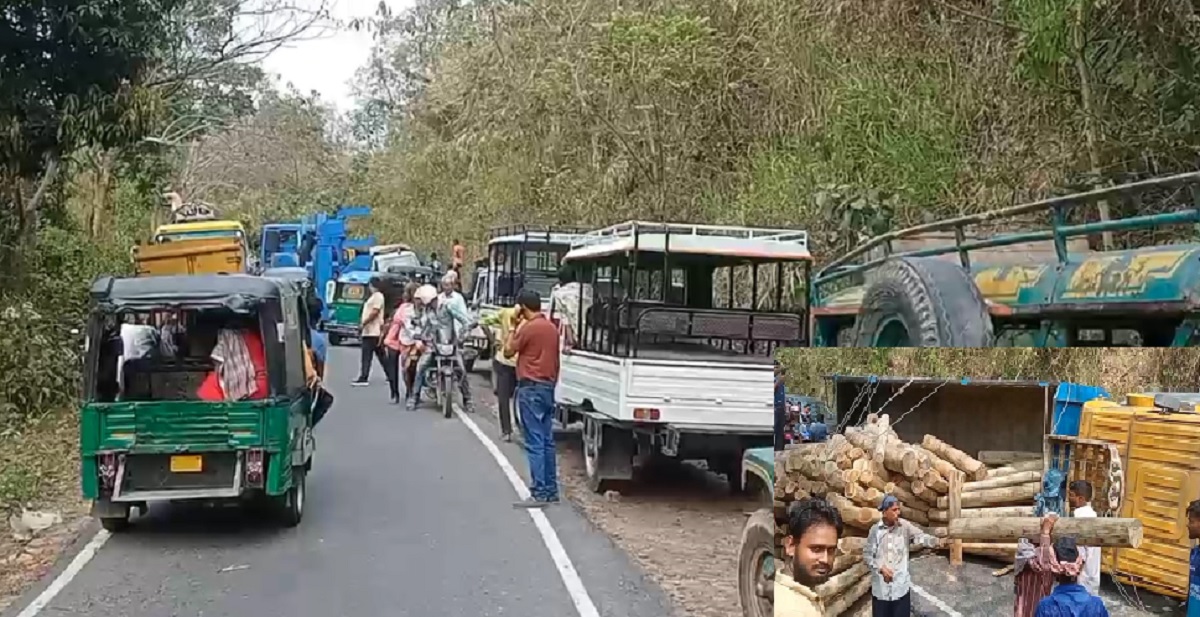 খাগড়াছড়িতে কাঠ বোঝাই ট্রাক উল্টে স্থানীয় ও পর্যটকদের ভোগান্তি