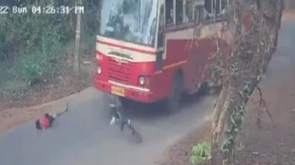 একবার নয়, দু’বার মৃত্যুর হাত থেকে বাঁচলো এক বালক। আর তাও মাত্র কয়েক সেকেন্ডের মধ্যে। আট বছর বয়সী ওই বালক সাইকেল নিয়ে যাওয়ার সময় একটি মোটরবাইকের সঙ্গে ধাক্কা লাগে। বাইকের সঙ্গে সংঘর্ষে সে মাটিতে পড়ে যাওয়ার পরপরই দ্রুত গতির একটি বাস সেখানে চলে আসে। কিন্তু তার ওপর দিয়ে বাসের চাকা চলে যাওয়ার আগেই সে সরে পড়ে রাস্তার ধারে। ঘটনাটি ভারতের কেরালার। খবর নিউজ এইটিনের।