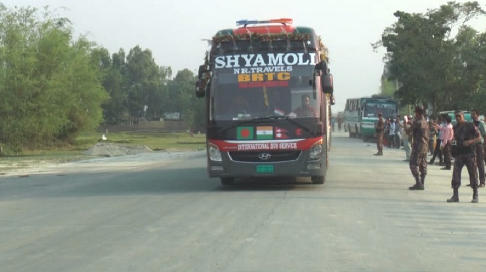 বাংলাবান্ধা দিয়ে ত্রিদেশীয় পরীক্ষামূলক বাস চলাচল শুরু