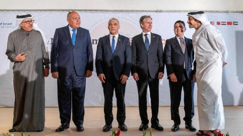 সোমবার (২৮ মার্চ) ইসরাইলের নেগেভ মরুভূমির একটি অবকাশ যাপনকেন্দ্রে দুই দিনের এই বৈঠক শেষ হয়। আরব দেশগুলোর মধ্যে ছিলেন সংযুক্ত আরব আমিরাত, বাহরাইন, মিসর এবং মরক্কোর পররাষ্ট্রমন্ত্রীরা। অন্যদিকে ইসরায়েলের প্রতিনিধি হিসেবে ছিলেন দেশটির পররাষ্ট্রমন্ত্রী ইয়ায়ির লাপিদ।