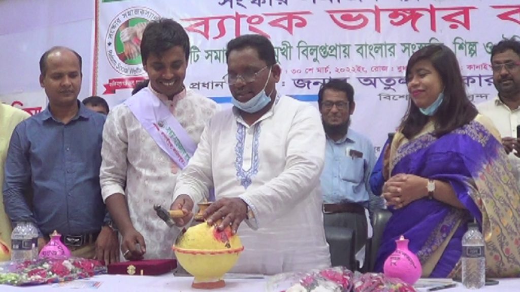 ‘মানবিক মানুষ গড়ে তোলাই সবচেয়ে বড় মানব সেবা’ শ্লোগানকে সামনে রেখে ফরিদপুর সদর উপজেলার কানাইপুর স্কুল মাঠে অনুষ্ঠিত হয়েছে দুইদিনব্যাপী মাটির ব্যাংক ভাঙ্গার বঙ্গ আড়ং। এ অনুষ্ঠানে স্থানীয় একটি সংগঠনের পাঁচ শতাধিক সদস্য তাদের মাটির ব্যাংক ভাঙ্গেন। ব্যাংকে জমানো টাকা দরিদ্র কুটির শিল্পী, মৃৎশিল্পী, কৃষক ও দরিদ্র শিক্ষার্থীদের সহায়তায় ব্যয় করা হবে বলে জানিয়েছে সংগঠনটি।