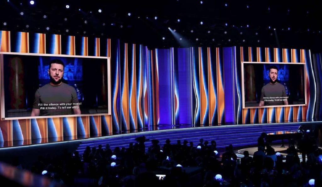 সম্মানজনক গ্র্যামি অ্যাওয়ার্ডস অনুষ্ঠানে এক শক্তিশালী ভাষণে ইউক্রেনের প্রেসিডেন্ট ভোলদিমের জেলেনস্কি বলেছেন, আমাদের দেশের সঙ্গীতশিল্পীরা টাক্সিডো (এক ধরনের স্যুট) নয়, পরে সামরিক পোষাক।