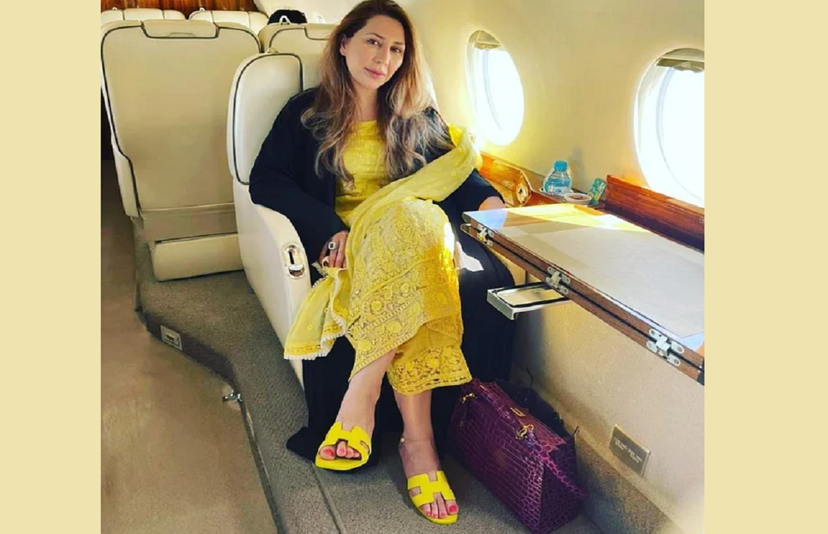 পাঞ্জাব সরকারের উড়োজাহাজ ব্যবহারের সময় ফারাহ খানের সঙ্গে থাকা হাতব্যাগটির দাম ৯০ হাজার ডলার বলে দাবি করা হচ্ছে। ছবি: সংগৃহীত