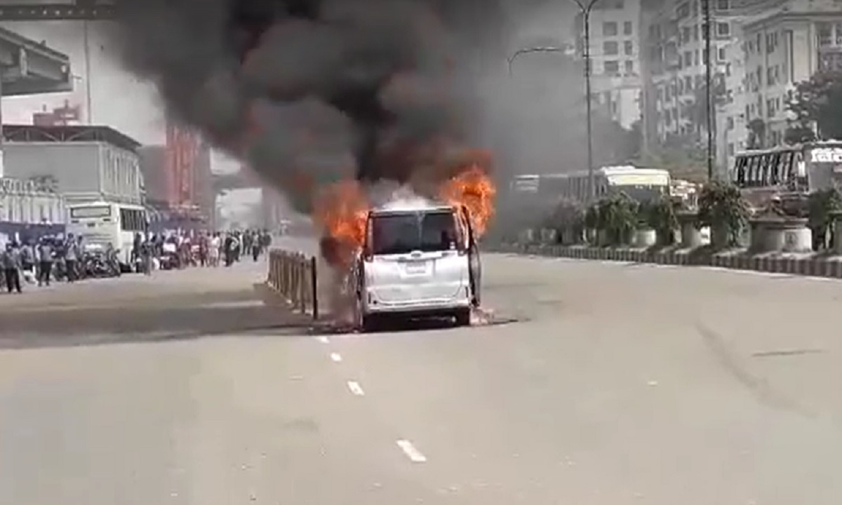 বনানীতে সিলিন্ডার বিস্ফোরণে মাইক্রোবাসে আগুন