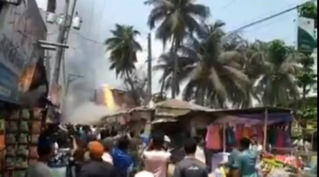 স্থানীয়রা জানায়, পাটবাজারের একটি কামারের দোকান থেকে আগুনের সূত্রপাত হয়। মুহূর্তের মধ্যেই আগুনের লেলিহান শিখা চারদিকে ছড়িয়ে পড়ে। এতে একটি জুতার দোকান, একটি হোটেল, ৪টি কামারের দোকান, একটি জুয়েলার্স ও পাশ্ববর্তী ডিজিটাল মডার্ন ডায়াগনস্টিক সেন্টারের ব্যাপক ক্ষয়ক্ষতি হয়েছে। এ সময় স্থানীয় লোকজন আগুন নেভানোর চেষ্টা চালিয়েও ব্যর্থ হয়।