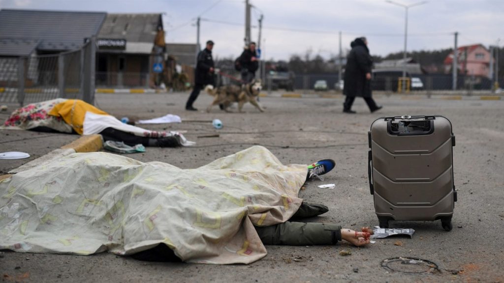 কিয়েভ অঞ্চলেই ১২শর ওপর বেসামরিক মানুষের মরদেহ উদ্ধার করা হয়েছে চলছে পরিচয় শনাক্তের কাজ। রোববার (১০ এপ্রিল) এ তথ্য জানান ইউক্রেনের প্রসিকিউটর জেনারেল ইরিনা ভেনদিৎতোভা। যুদ্ধে বেসামরিক মানুষ খুন করার অপরাধে ইউক্রেন কর্তৃপক্ষ যুদ্ধাপরাধীদের তালিকা তৈরির উদ্যোগ নিয়েছে।