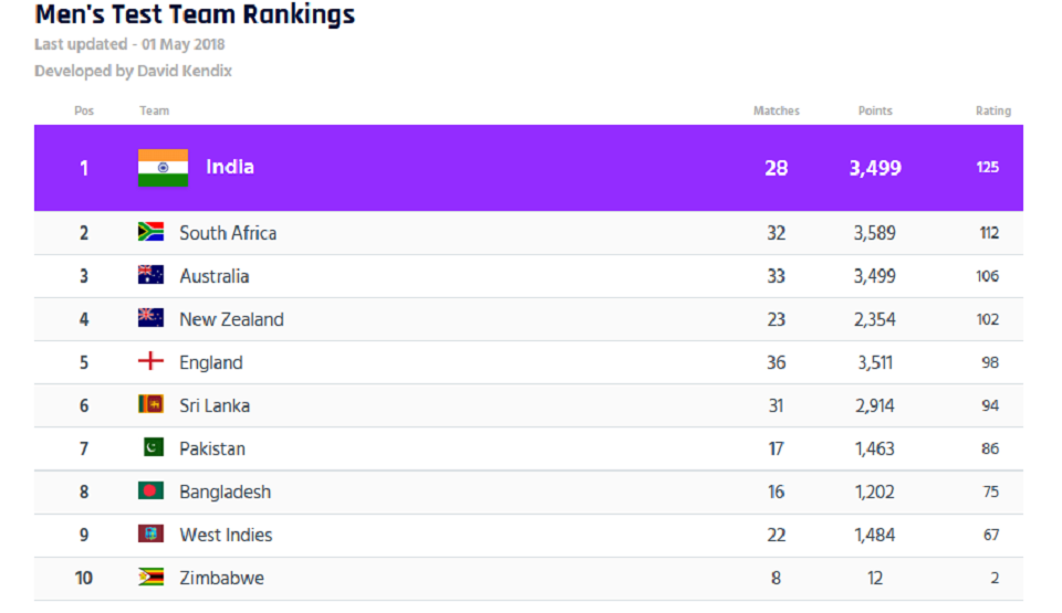 সদ্য প্রকাশিত আইসিসির র্যাঙ্কিংয়ে ৭৫ রেটিং আর ১২০২ পয়েন্ট নিয়ে বাংলাদেশ উঠে এসেছে এক ধাপ। আগের থেকে ৪ রেটিং পয়েন্ট বেড়েছে টাইগারদের। ইতিহাসে প্রথম বারের মতো ৯ নম্বরে নেমে গেছে ওয়েস্ট ইন্ডিজ। ক্যারিবীয়দের রেটিং পয়েন্ট ৫ পয়েন্ট কমে এখন ৬৭। বাংলাদেশ আর ওয়েস্ট ইন্ডিজের রেটিংয়ের ব্যবধান এখন ৭। ১২৫ রেটিং নিয়ে টেস্টে শীর্ষে রয়েছে ভারত।