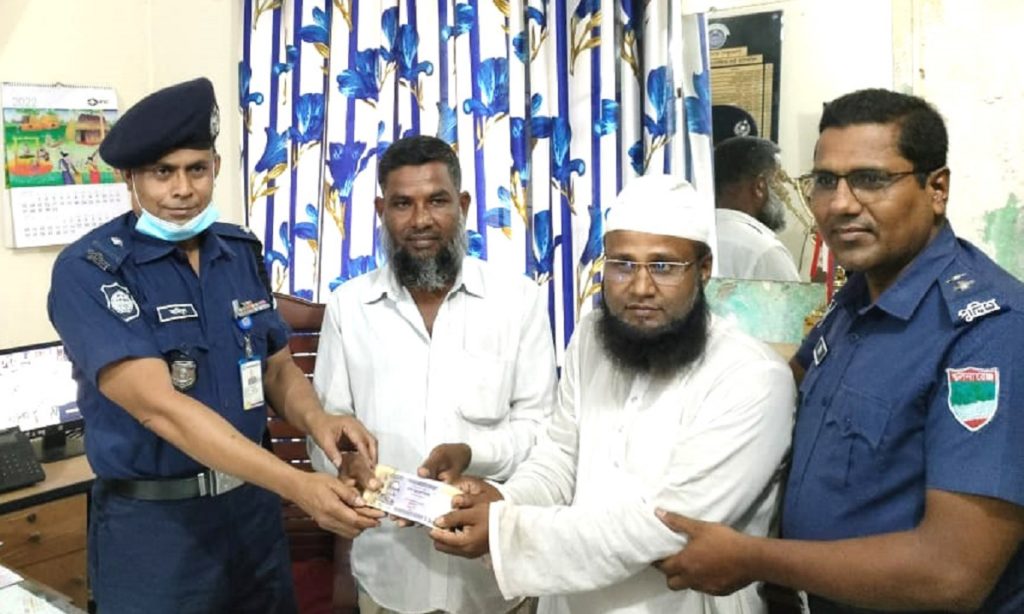 ইতিমধ্যে শৈলকুপা থানা পুলিশ জানতে পারেন মালিপাড়া মাদরাসায় তার হারিয়ে যাওয়া ঐ টাকা জমা রাখা হয়েছে। তখন থানার ওসি আমিনুল ইসলাম উভয় পক্ষকে থানায় ডেকে প্রকৃত মালিককে তার টাকা বুঝিয়ে দেন। একই সাথে ইজিবাইক চালক আনোয়ার হোসেনের সততার জন্য নগদ ৫০০ টাকা পুরস্কৃত করেন ওসি। অন্যদিকে প্রভাষক মাওলানা আশরাফুল ইসলাম তাকে ৫ হাজার টাকা দিতে চাইলেও তা নেননি ইজিবাইক চালক আনোয়ার।