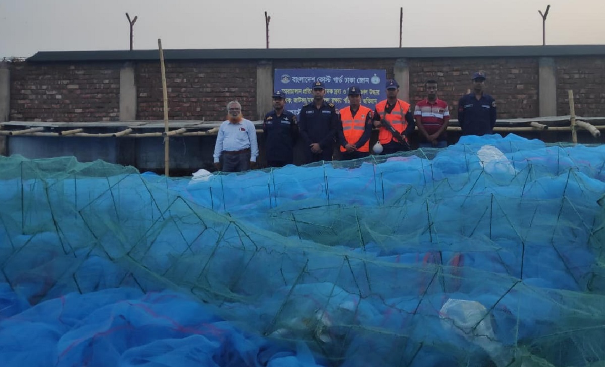 চাঁদপুরে ১৩৫ কোটি টাকার নিষিদ্ধ জাল জব্দ কোস্টগার্ডের