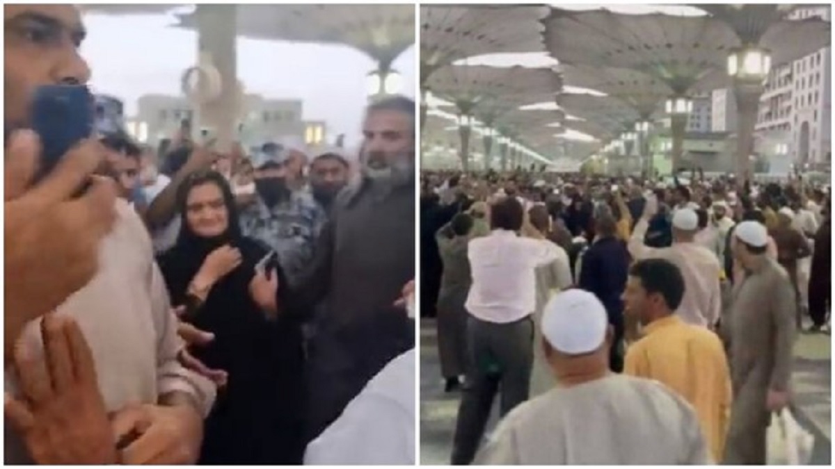 সামাজিক যোগাযোগ মাধ্যমে ছড়িয়ে পড়া ওই ঘটনার একটি ভিডিওতে দেখা যায়, মসজিদে থাকা পাকিস্তানি ওমরাহ পালনকারীরা শাহবাজকে দেখে ‘চোর চোর’ বলে স্লোগান দিচ্ছেন। অন্য আরেকটি ভিডিওতে দেখা যায়, মন্ত্রী মরিয়ম আওরঙ্গজেব এবং শাহজাইন বুগতিকে গালিগালাজ করছেন একদল বিক্ষোভকারী। এ সময় একজনকে পেছন থেকে শাহজাইন বুগতির চুল টানতেও দেখা যায়।