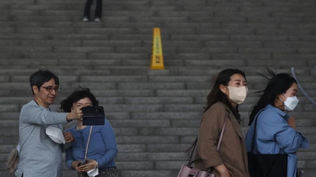 কোভিড-১৯ এর প্রকোপ কমে আসায় বাইরে মাস্ক পরার নিয়ম শিথিল করেছে দক্ষিণ কোরিয়া। তবে ব্যাপক ওমিক্রন সংক্রমণের কারণে অনেকেই এখনও মাস্ক পরা বাদ দিচ্ছেন না।