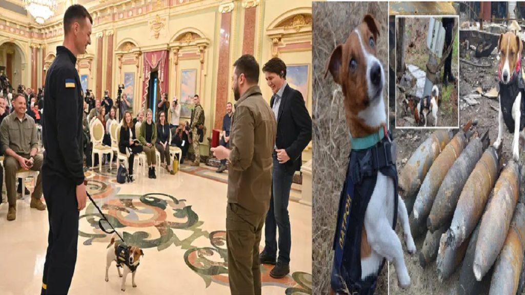 দেশপ্রেমের জন্য সেনাবাহিনীর বিশেষ প্রশিক্ষণপ্রাপ্ত স্নিফিং পাপি (গন্ধ শুঁকে বিস্ফোরক ও মাদক শনাক্তে সক্ষম এমন কুকুর) প্যাট্রন ও তার মালিককে পুরস্কৃত করেছেন ইউক্রেনের প্রেসিডেন্ট ভোলোদেমির জেলেনস্কি। পুরস্কার বিতরণী অনুষ্ঠানের মঞ্চে জেলেনস্কির সাথে উপস্থিত ছিলেন কানাডার প্রধানমন্ত্রী জাস্টিন ট্রুডো। খবর আলজাজিরার।