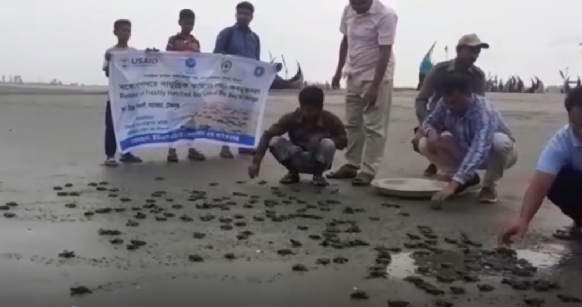 সাগরে অবমুক্ত করা হচ্ছে কচ্ছপের বাচ্চা।
