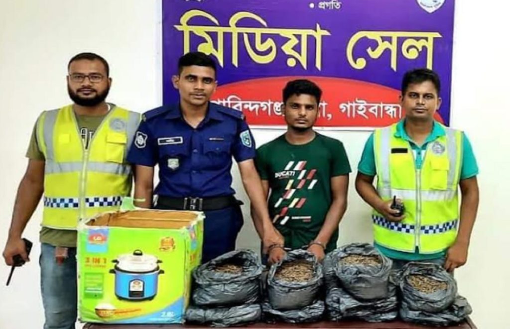 বিষয়টি নিশ্চিত করে গোবিন্দগঞ্জ থানার ভারপ্রাপ্ত কর্মকর্তা (ওসি, তদন্ত) মোস্তাফিজুর রহমান জানান, গোপন সংবাদের ভিত্তিতে বিনতি পরিবহন নামের একটি বাসে অভিযান চালানো হয়। এ সময় একটি রাইস কুকারের ভেতরে কালো পলিথিন দিয়ে মোড়ানো ৯টি প্যাকেটে থাকা ৮ কেজি গাঁজা উদ্ধার করা হয়। এসব গাঁজা পাচারের অভিযোগে বাস থেকে সিরাজুল ইসলামকে আটক করা হয়।