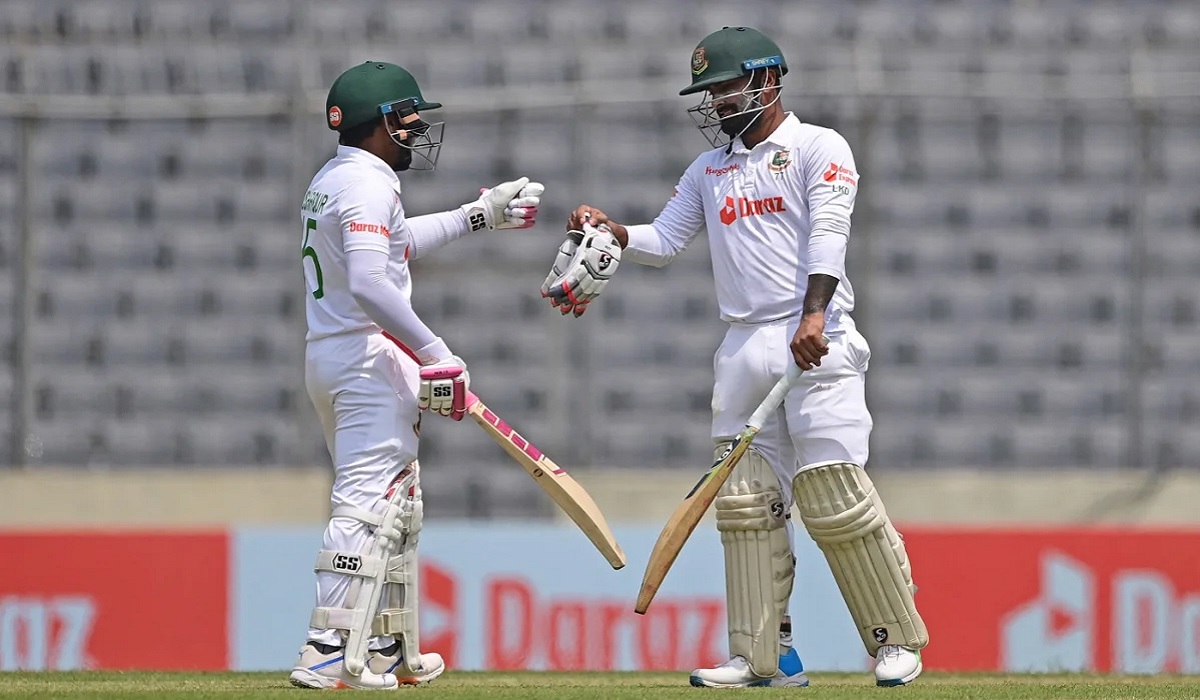 এর আগে, মিরপুর টেস্টের প্রথম আধঘণ্টায় ছিল লঙ্কান পেসারদের আধিপত্য। রাজিথা ও আসিথার বোলিং তোপে মাত্র ২৪ রানেই ৫ উইকেট হারায় বাংলাদেশ। রানের খাতা খোলার আগেই ফিরেছেন মাহমুদুল হাসান জয়, তামিম ইকবাল ও সাকিব আল হাসান। ৮ ও ৯ রান করেছেন যথাক্রমে শান্ত ও মুমিনুল। টেস্টের প্রথম ঘণ্টায়ই ব্যাকফুটে চলে যাওয়া টাইগার ইনিংস এখন হাঁটছে প্রথম টেস্টে দারুণ ব্যাট করা লিটন দাস ও মুশফিকুর রহিমের হাত ধরে। লঙ্কান পেসারদের জুজু দূর করে অবিচ্ছিন্ন জুটিতে এই দুই ব্যাটার তুলেছেন ১২১ রান। লিটন ৬৬ এবং মুশফিক ব্যাট করছেন ৬০ রান নিয়ে।