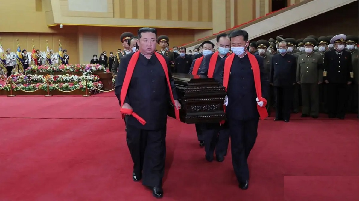 অন্ত্যেষ্টিক্রিয়ায় মাস্ক পরা ছাড়াই উপস্থিত ছিলেন কিম। যদিও এই মাসের শুরুতেই তার দেশে করোনাভাইরাসের ওমিক্রন ভ্যারিয়েন্ট আঘাত হেনেছে বলে স্বীকার করে কিম প্রশাসন। সে সময় মাস্ক পরে সরকারি দায়িত্ব সারতে দেখা গেছে তাকে।