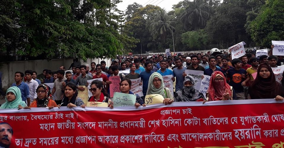 এর আগে কোটা বাতিল করে প্রধানমন্ত্রীর নির্দেশনা প্রজ্ঞাপন আকারে জারির দাবিতে ঢাকা বিশ্ববিদ্যালয় ক্যাম্পাসে বিক্ষোভ মিছিল করে আন্দোলনরত সাধারণ শিক্ষার্থী অধিকার সংরক্ষণ পরিষদ।