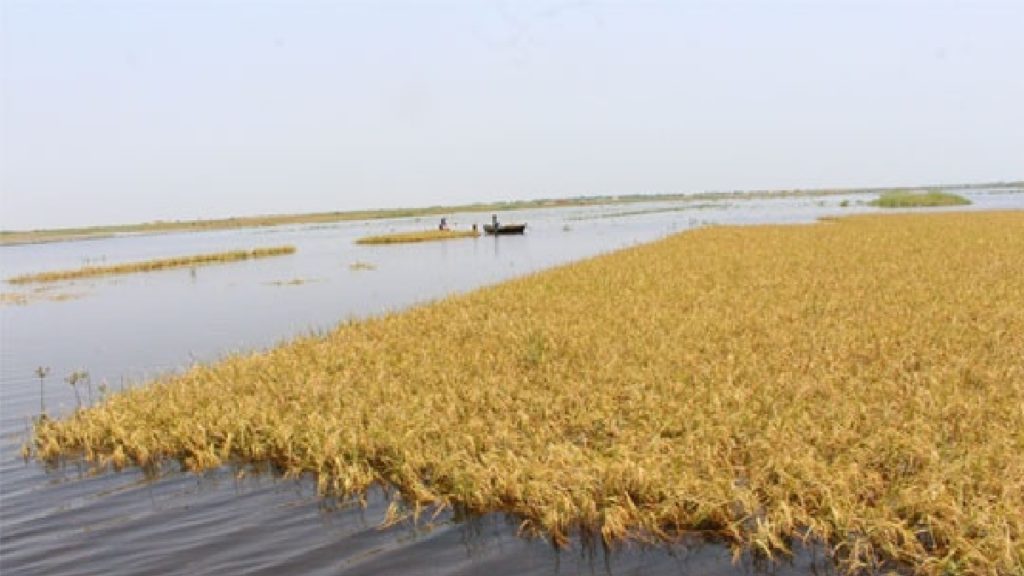 বন্যায় তলিয়ে গেছে কৃষক কামালের স্বপ্ন। নির্বাক দাঁড়িয়ে সেই স্বপ্ন ফিরে দেখার চেষ্টায় দেখা গেলো তাকে। উজানের ঢলে ৭ বিঘা জমির পাকা ধান এখন পানির নিচে। ধার দেনা করে ফলানো সোনালি ফসল হারিয়ে চোখে মুখে অন্ধকার তার। তার মত দিশেহারা সিলেটের কৃষক নূর আলীও। বন্যায় তলিয়ে গেছে তার ৫ বিঘা জমির পাকা ধান। তাই পরিবার নিয়ে কীভাবে চলবে সামনের দিনগুলো আছেন সেই দুশ্চিন্তায়।