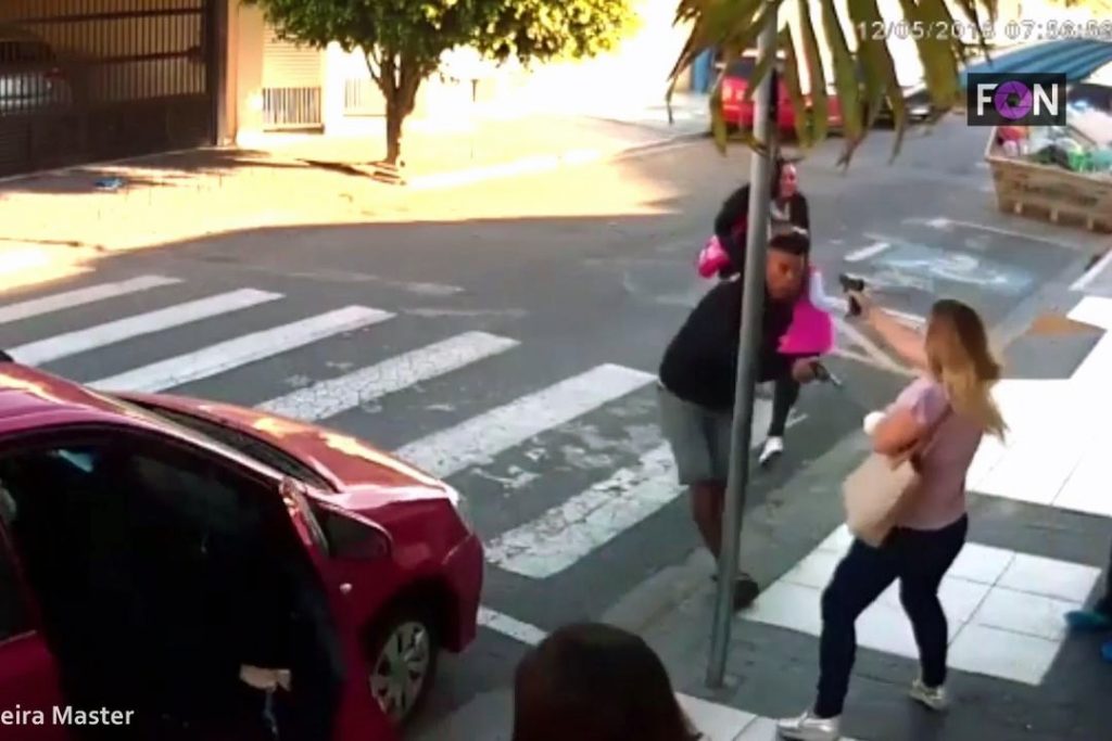 সাও পাওলোর এক সড়কের পাশে কিছু মহিলা দাঁড়িয়ে আছেন বাচ্চা সাথে নিয়ে। সহজ টার্গেট মনে করে, তাদের ওপর অস্ত্র নিয়ে চড়াও হয় এক ছিনতাইকারী। হতভাগ্য দুর্বৃত্ত জানতো না সেখানে দাড়ানো মহিলাদের মধ্যে একজন অফ ডিউটি পুলিশ কর্মকর্তাও রয়েছেন।