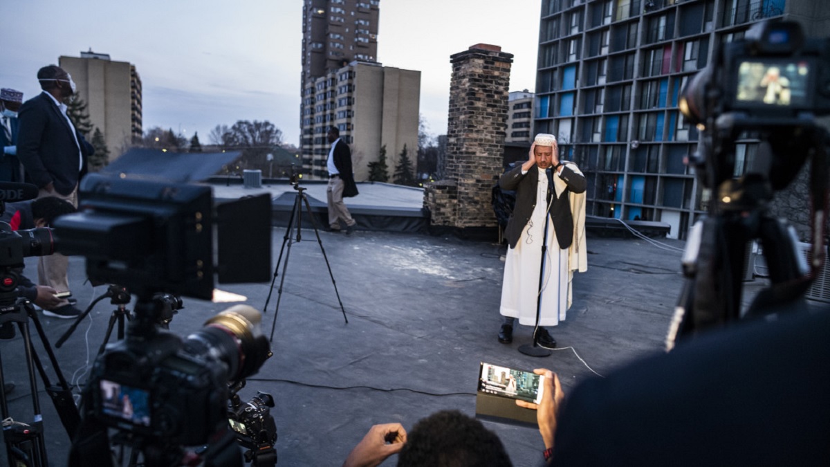 মিনিয়াপোলিসের একটি মসজিদে আজান দিচ্ছেন মুয়াজ্জিন।