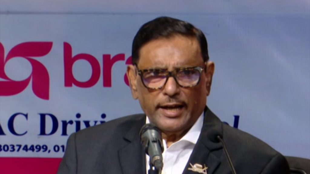 রাজধানীর ব্র্যাক ইন সেন্টারে বক্তব্যরত সড়ক পরিবহন ও সেতুমন্ত্রী ওবায়দুল কাদের।