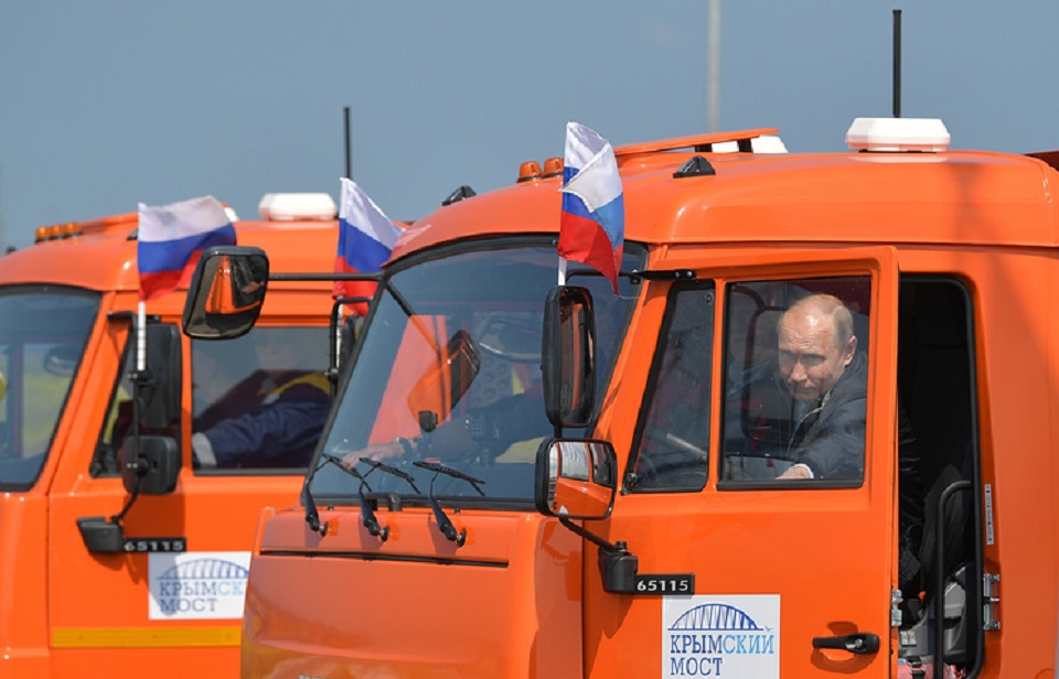 এবার ট্রাকচালকের আসনে দেখা গেল রুশ প্রেসিডেন্ট ভ্লাদিমির পুতিনকে। মঙ্গলবার, রাশিয়া ও ক্রাইমিয়ার মধ্যে একটি সংযোগ সড়ক ও রেলসেতু উদ্বোধন উপলক্ষে পুরো ১৯ কিলোমিটার পথ ট্রাক চালিয়ে আসেন তিনি।