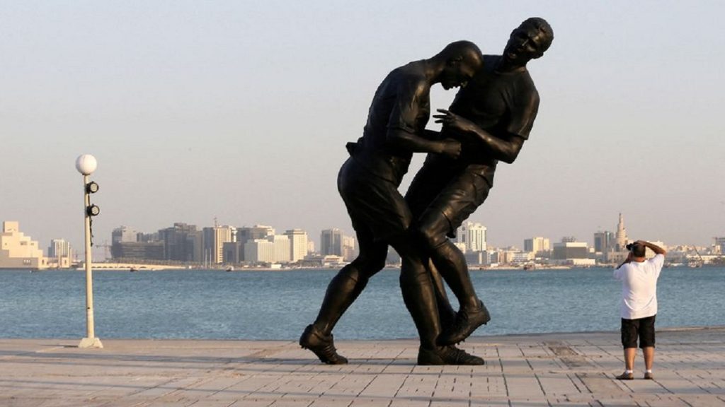 ২০০৬ বিশ্বকাপ ফাইনালে বর্ণবাদী মন্তব্য করায় ইতালির মার্কো মাতোরাজ্জির বুকে মাথা দিয়ে ঢুস মেরেছিলেন ফরাসি ফুটবল কিংবদন্তি জিনেদিন জিদান। চ্যাম্পিয়ন কে হয়েছে তা ছাপিয়েও যেন সেই রাত তো বটেই, বিশ্বকাপেরই মূল আলোচনা ছিল জিদানের সেই কাণ্ড। সেই মুহূর্তকে স্মরণ করে দোহায় এর আগে ভাস্কর্য স্থাপিত হলেও স্থানীয় মানুষের প্রতিবাদে তা সরিয়ে ফেলা হয়। এবার কাতার বিশ্বকাপে সেই ভাস্কর্যটি পুনঃস্থাপন করা হচ্ছে।