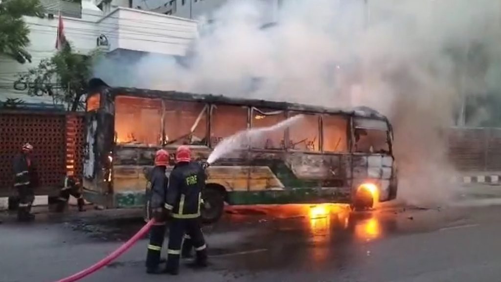 প্রগতি সরণিতে চলন্ত বাসে লাগা আগুন নিয়ন্ত্রণে
