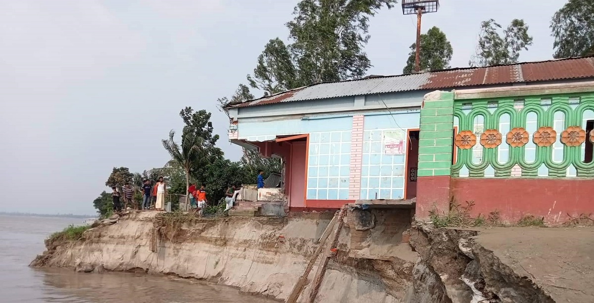 নদী ভাঙনে তলিয়ে গেছে তারকা মসজিদের একাংশ।