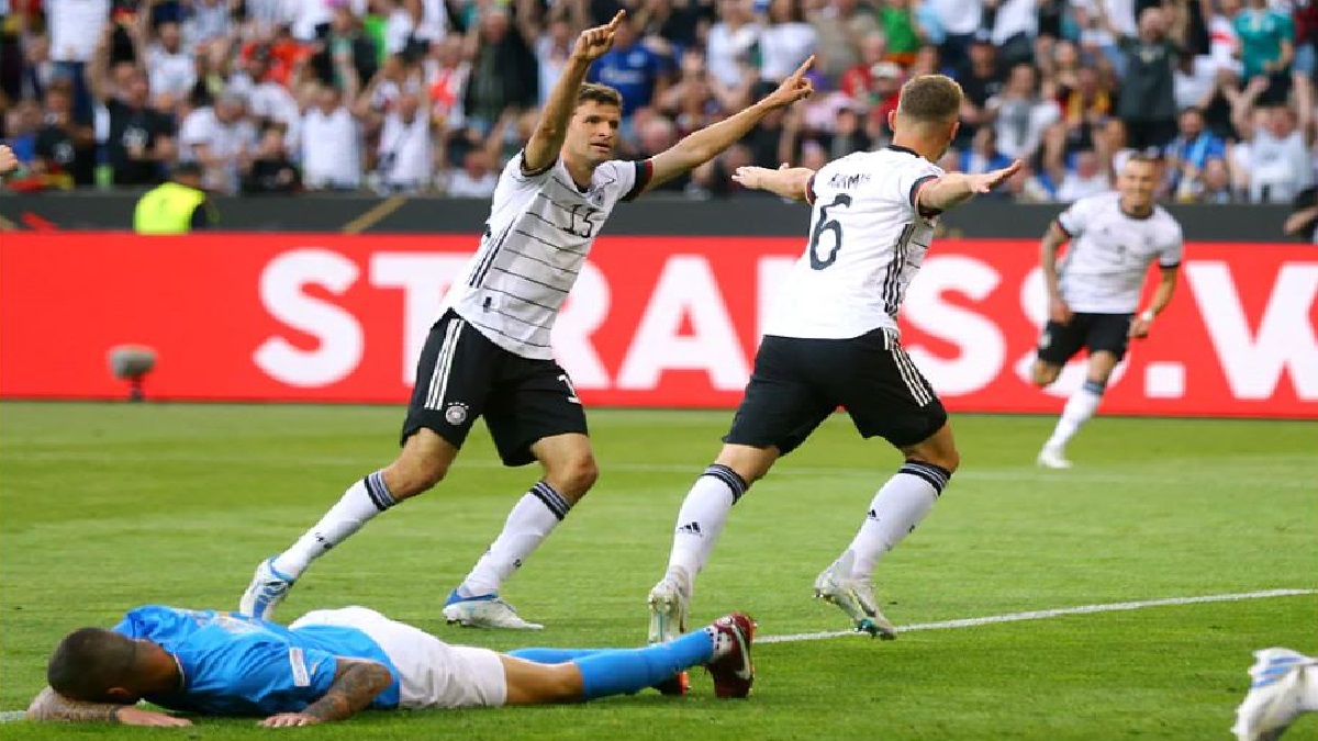 উয়েফা নেশন্স লিগে ইতালির বিপক্ষে বড় জয় পেয়েছে জার্মানি। মনশেনগ্লাডবাখের বরুশিয়া পার্কে ইউরো চ্যাম্পিয়নদের ৫-২ গোলে বিধ্বস্ত করেছে জার্মানরা। জসুয়া কিমিখ দলকে এগিয়ে নেয়ার পর সফল স্পটকিক থেকে ব্যবধান বাড়ান ইলকাই গিনদোয়ান। দ্বিতীয়ার্ধের শুরুতেই তৃতীয় গোল করেন টমাস মুলার। আর শেষ দুই গোল করে স্বাগতিকদের বড় জয় নিশ্চিত করেন টিমো ভেরনারে।