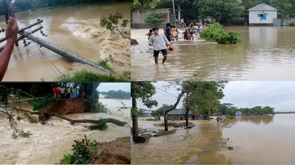 কৃষকের সবজি ক্ষেত, ফসলি রোপা ধানের জমিসহ ঢলের পানিতে পুকুর তলিয়ে ভেসে গেছে মাছ। ইতোমধ্যে পানিবন্দি হয়ে পড়েছে অনেক পরিবার। অতিবৃষ্টির কারণে শুক্রবার রাত থেকে ত্রিপুরা রাজ্যের উজান থেকে নেমে আসা পাহাড়ি ঢলের পানি অস্বাভাবিকভাবে বাড়তে থাকে। ওপারের পাহাড়ি ঢলের পানিতে উপজেলার সীমান্তবর্তী চারটি ইউনিয়নের মধ্যে মোগড়া ও দক্ষিণ ইউনিয়নের নিম্নাঞ্চল প্লাবিত হয়েছে।