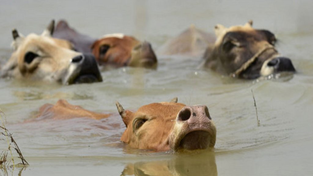 বন্যায় ভেসে গেছে সবকিছু। সীমাহীন দুর্ভোগে থাকা মানুষের পাশাপাশি কষ্ট বেড়েছে গৃহপালিত গবাদি পশুরও। যে যেভাবে পারছেন, গরু-ছাগলগুলোকে উঁচু জায়গাতে এনে রাখার চেষ্টা করছেন।