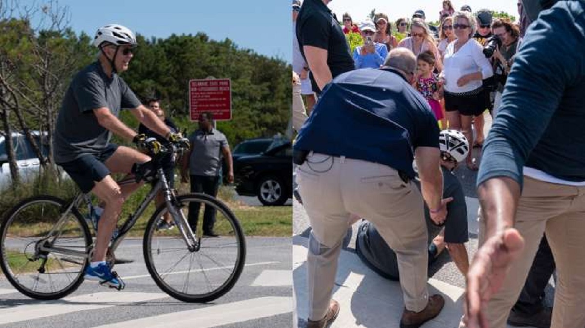 সাইকেল থেকে পড়ে যান বাইডেন। ছবি: সংগৃহীত।