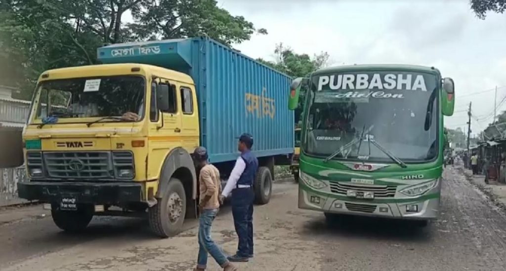 রোববার (১৯ জুন) বিকালে দৌলতদিয়ার সড়কে এমন চিত্র দেখা যায়। এ সময় সিরিয়ালে থাকা অপচনশীল পণ্যবাহী ট্রাকগুলোকে ফেরির জন্য অপেক্ষা করতে হচ্ছে অন্তত ৮ থেকে ১০ ঘণ্টা।