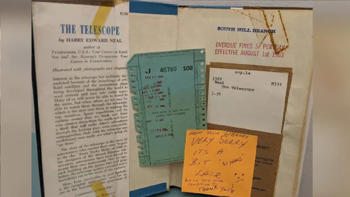 ভারতীয় গণমাধ্যম এনডিটিভির প্রতিবেদনে বলা হয়, ঘটনাটি ঘটেছে কানাডার ব্রিটিশ কলম্বিয়া প্রদেশের ভ্যানকুভারে। সাউথ হিল পাবলিক লাইব্রেরি থেকে ‘দ্য টেলিস্কোপ’ নামক বই ধার নিয়েছিলেন এক ব্যক্তি। বইটির লেখক হ্যারি এডওয়ার্ড নেইল। সেই বই ইস্যু করা হয়েছিল ১৯৭১ সালের ২০ এপ্রিল।