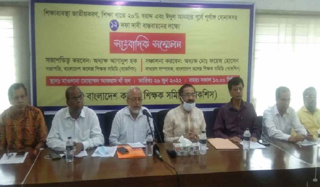 রোববার (২৬ জুন) সকালে জাতীয় প্রেসক্লাবে এক সংবাদ সম্মেলনে সংগঠনের পক্ষে লিখিত বক্তব্য উপস্থাপন করেন শিক্ষকরা। লিখিত বক্তব্যে সংগঠনের সভাপতি অধ্যক্ষ আসাদুল হক বলেন, কোভিড-১৯ ও দ্রব্যমূল্যের ঊর্ধ্বগতির সময়ে ২০২২-২৩ বাজেটে শিক্ষাখাতে যে বরাদ্দ দেওয়া হয়েছে তা প্রয়োজনের তুলনায় কম। বেসরকারি কলেজের একজন শিক্ষক ঈদ উৎসব ভাতা পান বেসিক বেতনের ২৫ শতাংশ, বাড়ি ভাড়া পান ১০০০ টাকা, দেওয়া হয় না পূর্ণাঙ্গ চিকিৎসা ভাতা। আমাদের প্রতিবাদ সত্ত্বেও অধ্যক্ষ ও উপাধ্যক্ষ নিয়োগের নীতিমালা জনবল কাঠামো ২০২১-এ অন্তর্ভুক্ত করা হয়েছে। যার ফলে বেসকারি কলেজে অধ্যক্ষ ও উপাধ্যক্ষ নিয়োগ প্রক্রিয়ায় অচলাবস্থার সৃষ্টি হয়েছে। এ সুযোগে একটি স্বার্থান্বেষী মহল সরকারি কলেজের শিক্ষকদের বিভিন্ন বেসরকারি বড় বড় কলেজে প্রেষণে নিয়োগ দিয়ে চলেছে, তা কোনো অবস্থাতেই আমরা মেনে নেব না।