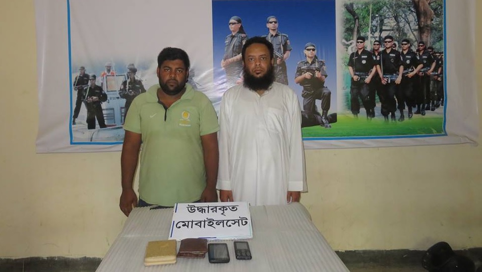 আটকরা হলেন, সদর উপজেলার মুক্তারগাঁতি গ্রামের মৃত হাশেম আনছারীর ছেলে জাকারিয়া আনছারী (৪৫) ও পৌর এলাকার সয়াধানগড়া মহল্লার মহির উদ্দিনের ছেলে আপেল মাহমুদ (২৯)।