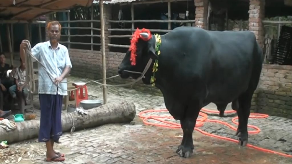 তার নাম চাঁপাই সম্রাট। চালচলনে সম্রাটের মতো হলেও, আচরণে তিনি বেশ শান্তই। চাঁপাইনবাবগঞ্জের শিবগঞ্জের হাজারবিঘী গ্রামের জুলফিকার আলীর পোষা গাভী থেকে জন্ম সম্রাটের। ৫ বছর ধরে সন্তানস্নেহে লালন-পালন। জন্মের পর থেকেই সুঠামদেহী হওয়ায় আলাদাভাবে পশুটির যত্ন নেন জুলফিকার। এবারের কোরবানির হাট উপলক্ষে জুলফিকার চাঁপাই সম্রাটের দর হেঁকেছেন ৩০ লাখ টাকা। গরুটি ফ্রিজিয়ান জাতের।