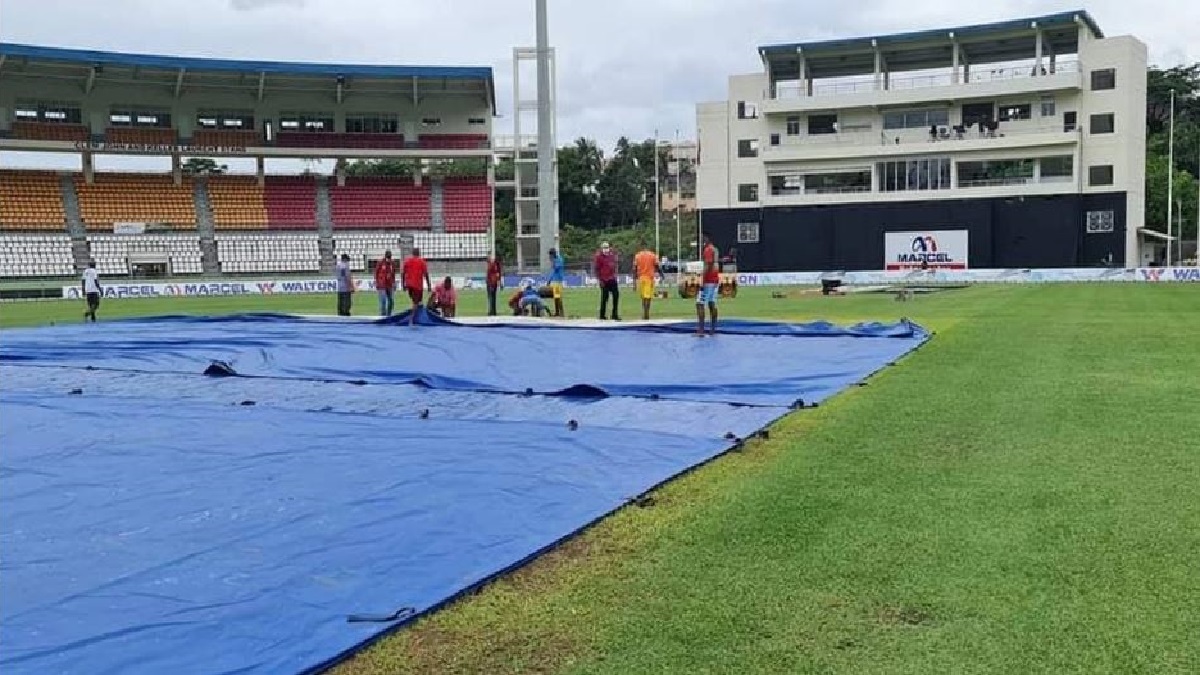 পাঁচ বছর পর ওয়েস্ট ইন্ডিজের ডমিনিকার উইন্ডসর পার্কে আন্তর্জাতিক কোনো ম্যাচ হওয়ার কথা ছিল। কিন্তু তাতে অপেক্ষা আরও বাড়ালো বৃষ্টি। বাংলাদেশ ও ওয়েস্ট ইন্ডিজের মধ্যকার সিরিজের প্রথম টি-টোয়েন্টি ম্যাচটি এখনও শুরু হয়নি। সময়মতো হয়নি টসও।