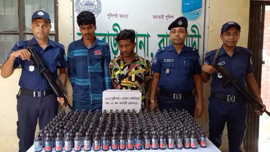 অপরদিকে একই দিন সকাল সাড়ে ৭টার দিকে সদর থানা পুলিশের অভিযানে শহরের বড়পুল থেকে পটুয়াখালীগামী বিআরটিসির একটি বাসে তল্লাশি চালিয়ে ২০০ বোতল ফেনসিডিলসহ হামিদুল ইসলাম (২০) ও জীবন আলী (২০) নামে দুই মাদক ব্যবসায়ীকে গ্রেফতার করা হয়।