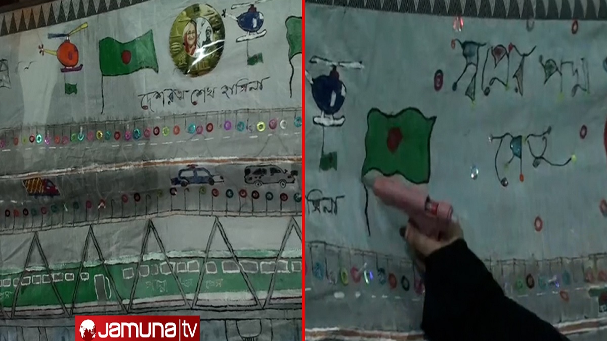 পুঁতি-সুতাসহ হাতের কারিশমায় শাড়িতে ফুটিয়ে তোলা হয়েছে পদ্মা সেতু। সেই শাড়িতে আছে লাইটিংও। এক মাসের কঠোর চেষ্টায় শাড়িতে পদ্মা সেতু ফুটিয়ে তোলার চেষ্টা করেছেন নেত্রকোণার মাস্টার্স পড়ুয়া শিক্ষার্থী ইসরাত কলি। বানানো হয়েছে পুঁতি দিয়ে গহনাও। সবই প্রধানমন্ত্রী শেখ হাসিনাকে ঈদ উপহার দিতে চান কলি ও তার ৩ শিক্ষার্থী।