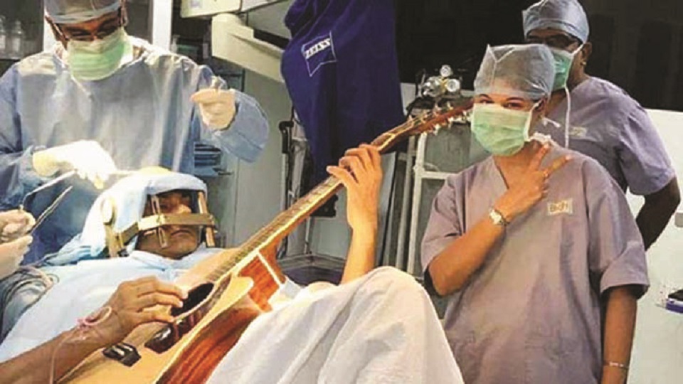 জটিল অপারেশন চলছে মস্তিষ্কে। সাত ঘণ্টাব্যাপী ডাক্তারদের চুলচেরা বিশ্লেষণ। এই ম্যারাথন অপারেশনের গোটা সময়ই সজ্ঞানে গিটার বাজিয়ে গেলেন রোগী। অদ্ভুত এই ঘটনা ঘটেছে ভারতের বেঙ্গালুরুর একটি হাসপাতালে।