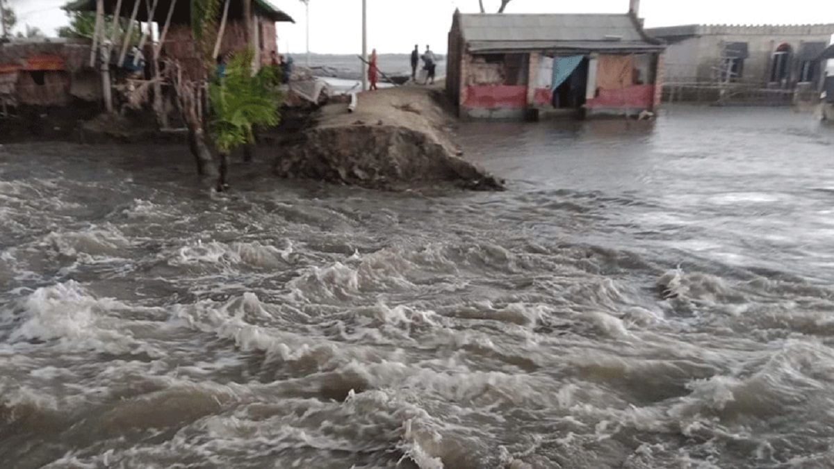 সাতক্ষীরার শ্যামনগরে খোলপেটুয়া নদীর বেড়িবাঁধ ভেঙে ৫টি গ্রাম প্লাবিত হয়েছে।