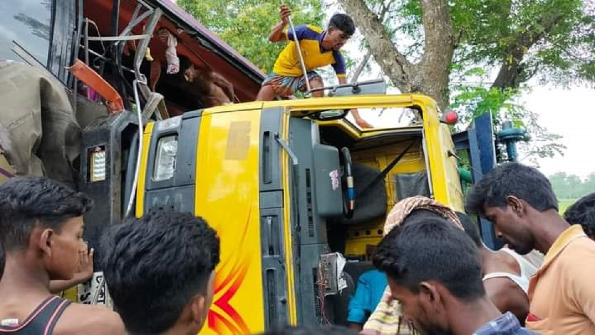 হাটিকুমরুল হাইওয়ে থানার ভারপ্রাপ্ত কর্মকর্তা (ওসি) লুৎফর রহমান বলেন, ঢাকাগামী একটি যাত্রীবাহী বাস দুপুরের দিকে খালকুলা দবিরগঞ্জ এলাকায় পৌঁছলে বিপরীত দিক থেকে আসা দুটি ট্রাকের ত্রিমুখী সংঘর্ষ হয়। এতে ঘটনাস্থলেই তিনজনের মৃত্যু হয়। এ সময় আহত হয় একজন। নিহতরা সবাই বাসের যাত্রী ছিলেন। খবর পেয়ে পুলিশ ঘটনাস্থলে পৌঁছে আহত ব্যক্তিকে হাসপাতালে পাঠিয়েছে। নিহতদের মরদেহ উদ্ধার করে থানা হেফাজতে রাখা হয়েছে। তাদের নাম পরিচয় আপাততো জানা যায়নি।
