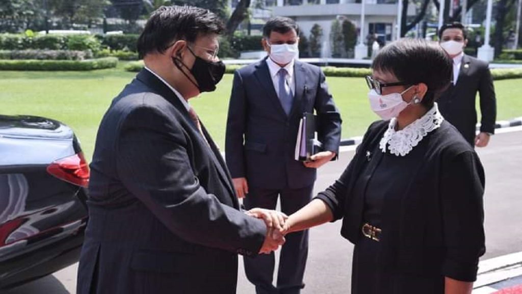 ইন্দোনেশিয়ার রাজধানী জাকার্তায় বাংলাদেশের পররাষ্ট্রমন্ত্রী ড. এ.কে. আব্দুল মোমেন ও ইন্দোনেশিয়ার পররাষ্ট্রমন্ত্রী রেতনো এলপি মারসুদির মধ্যে দ্বিপাক্ষিক বৈঠক অনুষ্ঠিত হয়েছে। বাংলাদেশ-ইন্দোনেশিয়া বৈঠকে প্রতিনিধি দলের নেতৃত্ব দেন দুই দেশের পররাষ্ট্রমন্ত্রী।