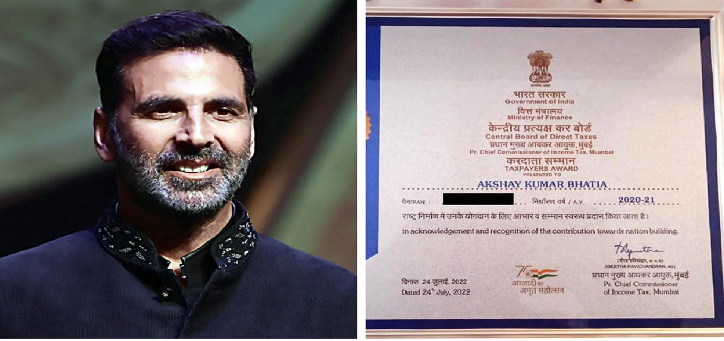 ভারতের সরকারি প্রতিবেদন অনুযায়ী, গত পাঁচ বছর ধরে দেশটির সর্বোচ্চ করদাতার খেতাব জিতে আসছেন অক্ষয় কুমার। বর্তমানে টিনু দেশাইয়ের সাথে একটি ছবির শ্যুটে দেশের বাইরে রয়েছেন অক্ষয়। আর তাই তার পক্ষ থেকে সম্মাননা গ্রহণ করেছে একটি প্রতিনিধি দল।