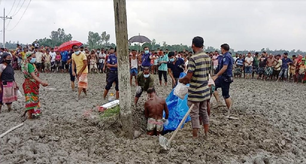 রংপুরের পীরগাছার একটি দোলায় বিদ্যুতের খুঁটির চতুর্পাশে পুঁতে রাখা অবস্থায় একজন নারীর লাশ উদ্ধার করেছে পুলিশ। তবে তার পরিচয় শনাক্ত না হলেও ওই নারীর বয়স ২৫ থেকে ৩০ বছরের মধ্যে। পুলিশের ধারণা অন্যকোনো স্থানে ধর্ষণের পর তাকে হত্যা করে লাশ গুম করতে চেয়েছিল দুর্বৃত্তরা। পরিচয় শনাক্তে প্রয়োজনীয় আলামত সংগ্রহ করেছে পুলিশ।