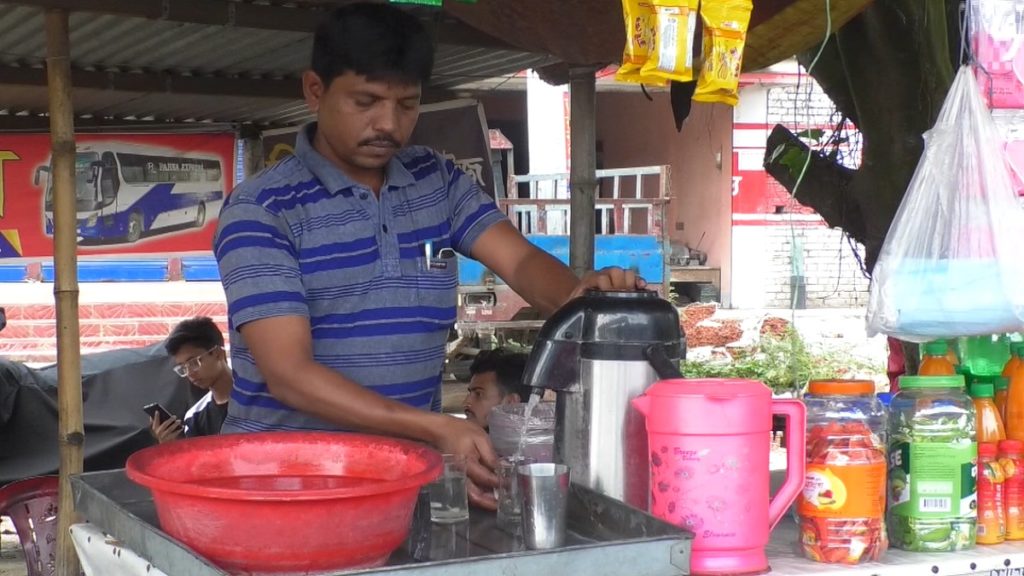 ইউনিয়ন পরিষদের সদস্য সুমন বাবু। যিনি জীবনের শুরু থেকে চা বিক্রি করে জীবিকা নির্বাহ করতেন, নির্বাচিত হবার পরও